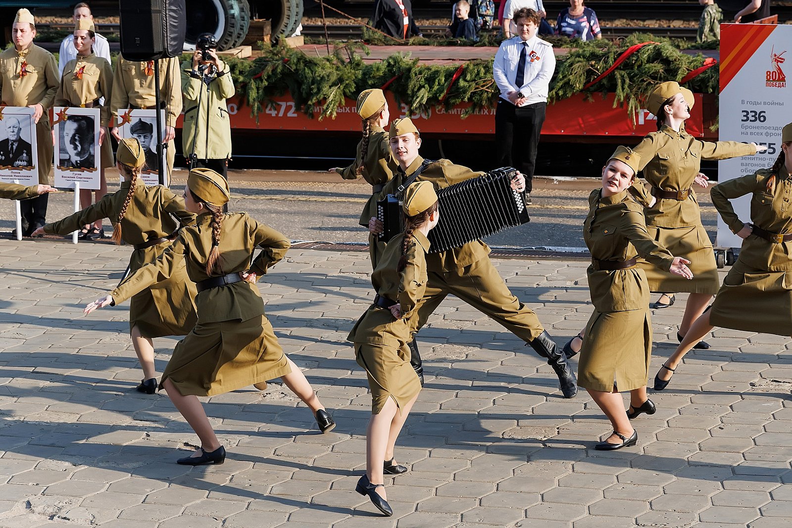 Очень приятно и почетно, что в Коврове в торжественной части встречи "Поезда Победы" участвовал наш коллектив "Веснушки". Девчонки во главе с Артемом Киселевым отлично исполнили танец "Гармошка фронтовая". Молодцы!!!