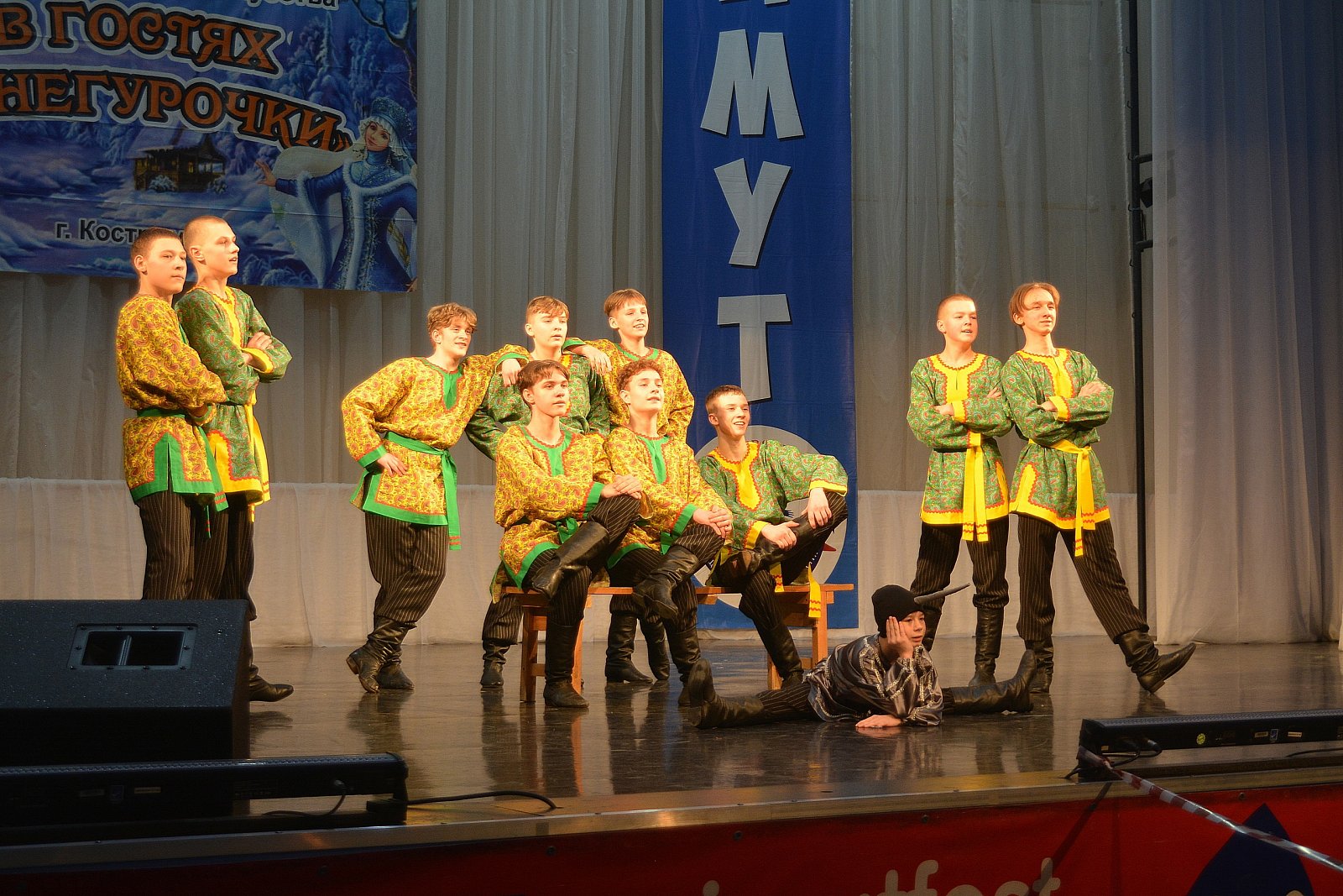 С 21 по 23 января в Костроме состоялся Международный конкурс-фестиваль хореографического искусства «В гостях у Снегурочки». Он собрал 30 танцевальных коллективов из Московской, Ленинградской, Архангельской, Свердловской, Ивановской, Ярославской и других областей нашей страны. От Владимирской области на конкурсе выступил Образцовый хореографический коллектив «Веснушки» из ДДК «Дегтяревец» (рук. – Л.В. Божевец, пед-хор. – А.В. Божевец). Он привез 57 танцоров в возрасте от 9 до 17 лет. Ансамбль показал 12 замечательных номеров. Это «Хорошее настроение», «Русская плясовая», «Белорусский танец «Митусь», «Зов Севера», «Аварский танец», «Хава Нагила», «Дорога на Берлин» «Хореографическая миниатюра «От отца к сыну», «Белый лебедь летал…», «Молдавский танец», «Камаринская» (премьера), «Яблочко». Все танцы были высоко оценены судейской коллегией. В итоге «Веснушки» завоевали 1 диплом лауреата III степени, 2 диплома лауреата II степени, 3 диплома лауреата I степени! А мужская группа коллектива была удостоена звания обладателя ГРАН-ПРИ!!! «Веснушкам» вручили кубки и мягкие игрушки.